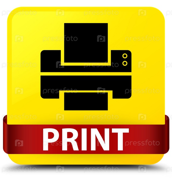 Печать (икона принтера) желтая квадратная кнопка красная лента посередине
