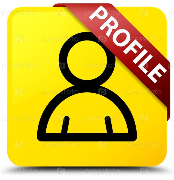 Профиль (икона члена) жёлтая квадратная кнопка красная лента в углу