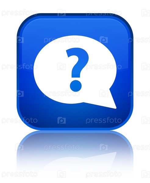 Вопросительный знак икона пузыря специальная синяя квадратная кнопка
