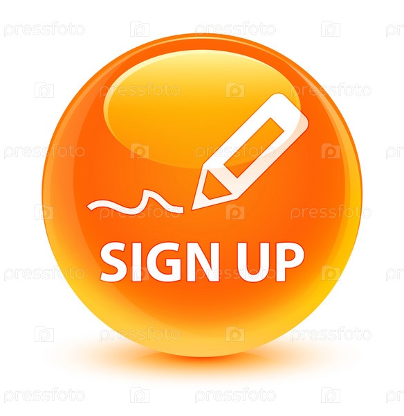 Зарегистрируйтесь со стеклянной оранжевой круглой кнопкой