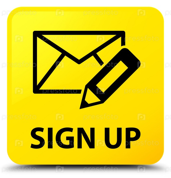 Sign up (edit mail icon) жёлтая квадратная кнопка