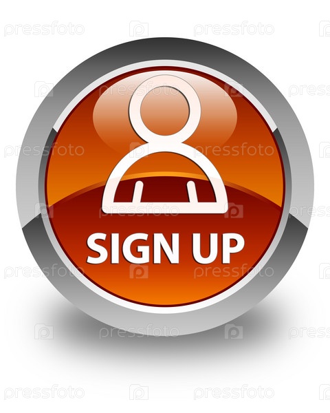 Регистрируйтесь (икона члена) блестящая коричневая круглая кнопка
