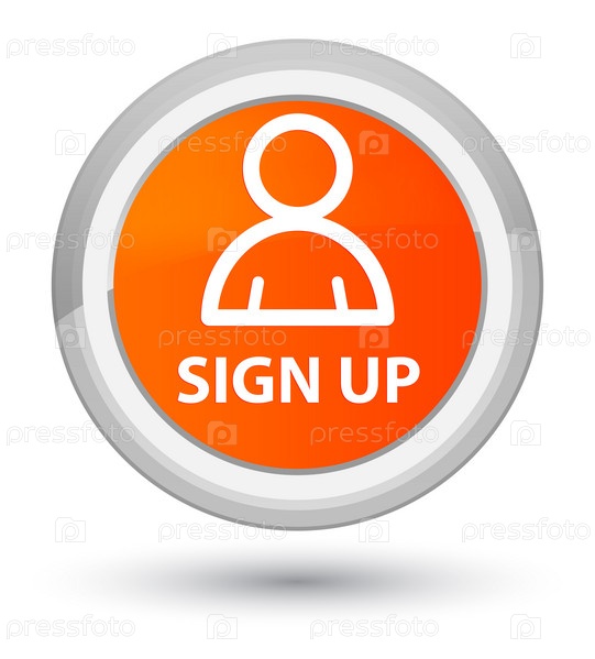 Регистрируйтесь (икона члена) первичная оранжевая круглая кнопка