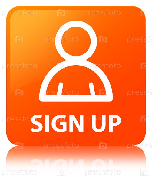 Зарегистрироваться (икона члена) оранжевая квадратная кнопка