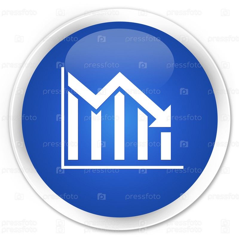 Статистика вниз икона премиум синий круглый кнопка