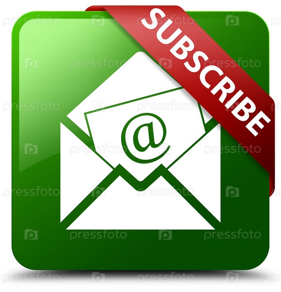 Подписаться (икона электронной почты рассылки) зеленая квадратная кнопка красная лента в углу