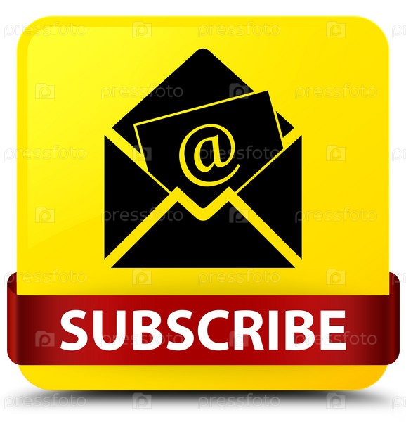 Подписаться (икона электронной почты новостного бюллетеня) желтая квадратная кнопка красная лента посередине