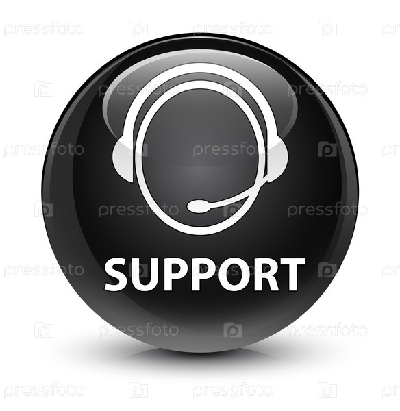 Поддержка (икона обслуживания клиентов) стеклянная черная круглая кнопка