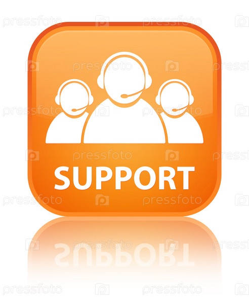 Поддержка (икона команды по обслуживанию клиентов) специальная оранжевая квадратная кнопка
