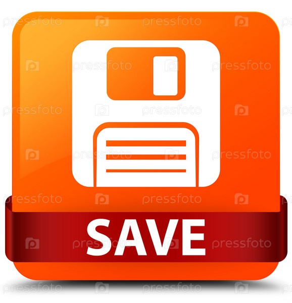 Сохранить (икона дискеты) оранжевая квадратная кнопка красная лента посередине