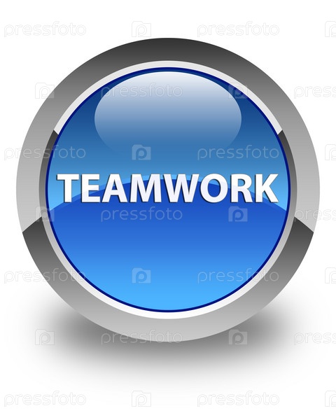 Командная работа глянцевая голубая круглая кнопка