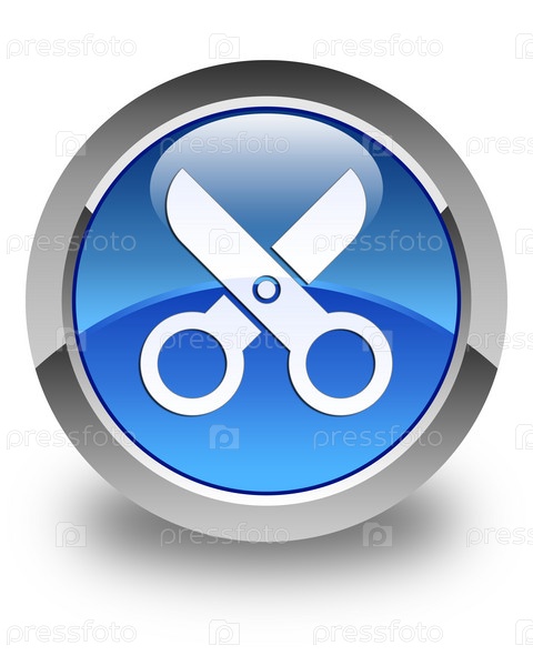 Икона ножницы блестящая голубая круглая кнопка
