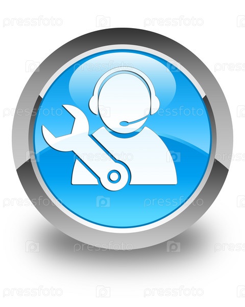 Икона технической поддержки блестящая синяя синевая круглая кнопка
