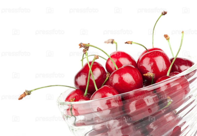 Свежие красные вишни, изолированные на белом фоне