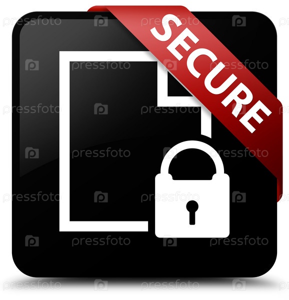 Secure (икона замка на странице документа) черная квадратная кнопка красная лента в углу