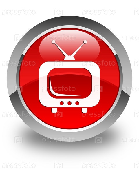 Икона телевизора блестящая красная круглая кнопка