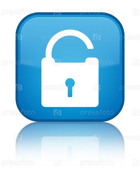 Разблокировать значок специальный синий синеватый квадратный кнопка