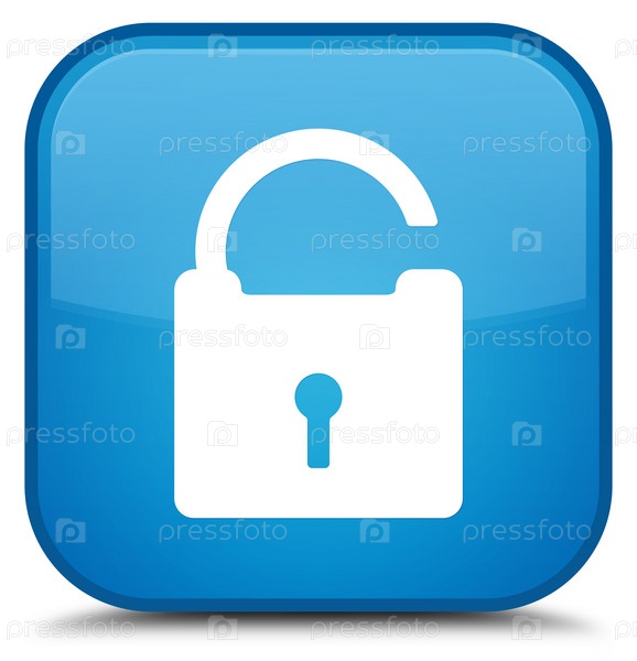 Разблокировать значок специальный синий синеватый квадратный кнопка