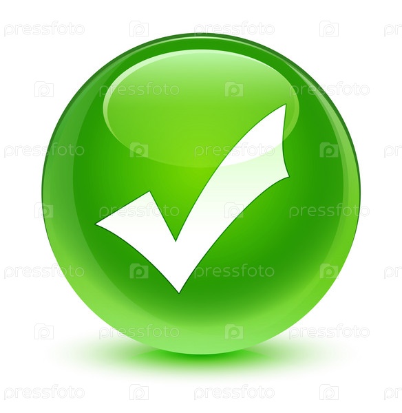 Икона проверки подтверждения стеклянно-зеленой круглой кнопкой