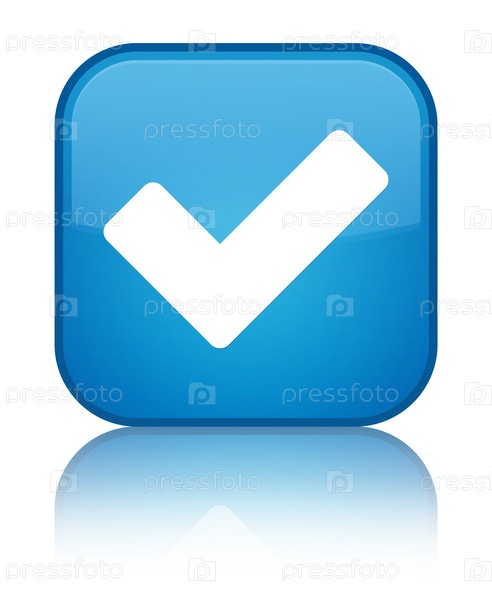 Validate icon special cyan blue square button Проверьте значок специальной синей голубой квадратной кнопки