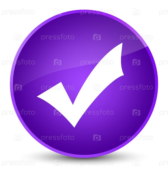 Икона проверки достоверности элегантная фиолетовая круглая кнопка
