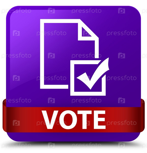 Голосование (икона опроса) фиолетовая квадратная кнопка красная лента посередине