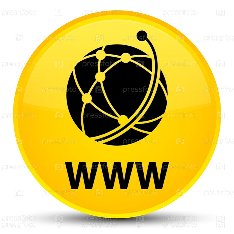 WWW (икона глобальной сети) специальная желтая круглая кнопка