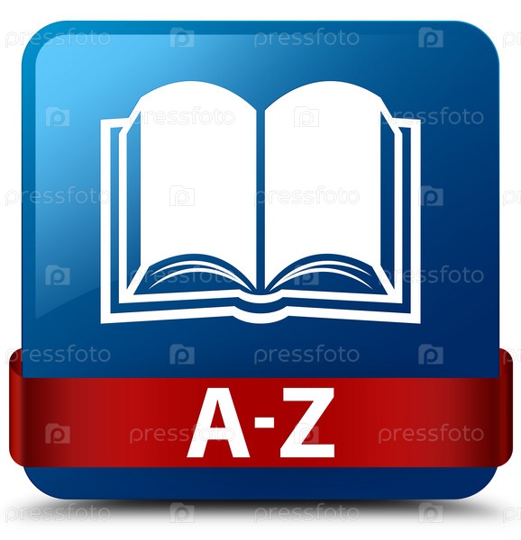 A-Z (икона книги) синяя квадратная кнопка красная лента посередине