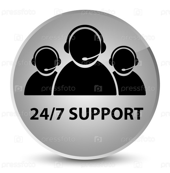 Поддержка 24/7 (икона команды по уходу за клиентами) элегантная белая круглая кнопка