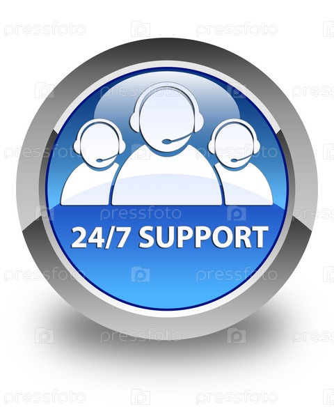 Поддержка 24/7 (икона команды по уходу за клиентами) глянцевая голубая круглая кнопка