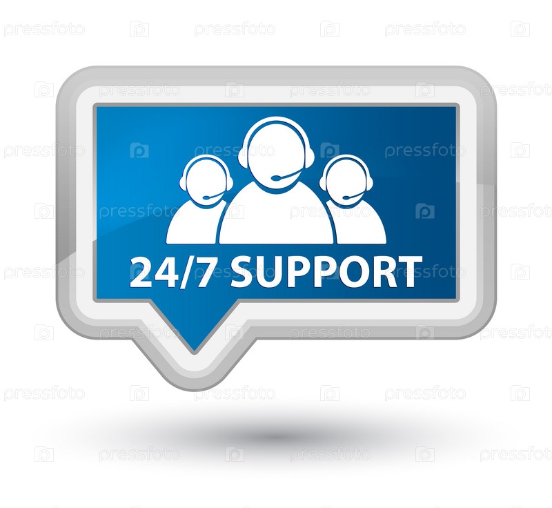 Поддержка 24/7 (икона команды по уходу за клиентами) первоклассная синяя кнопка баннера