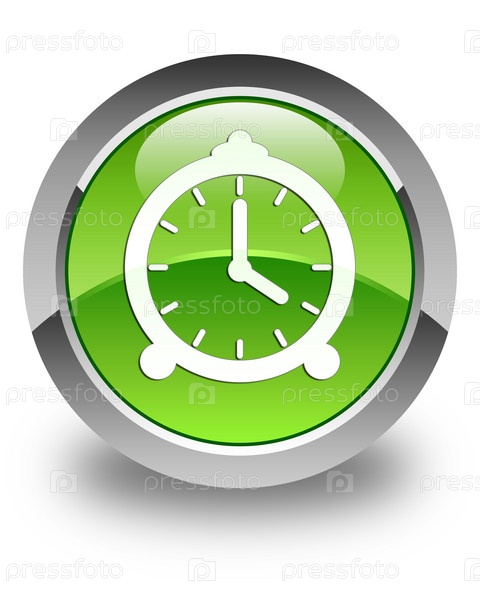 Икона будильника глянцевая зеленая круглая кнопка