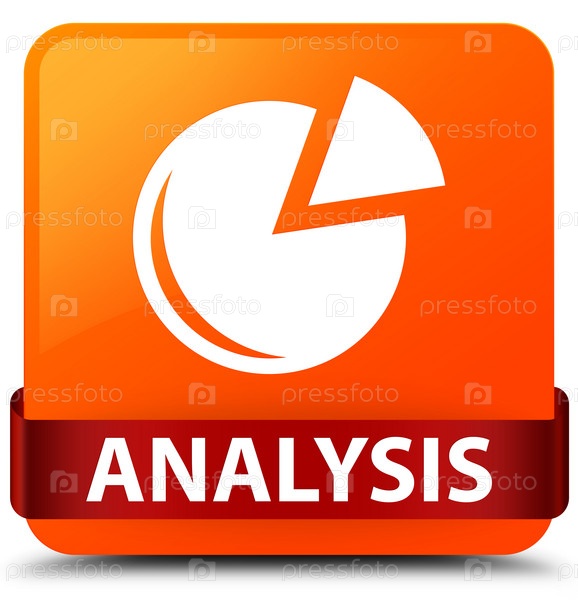Анализ (икона графика) оранжевая квадратная кнопка красная лента посередине