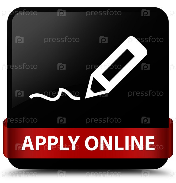 Apply online (edit pen icon) черная квадратная кнопка красная лента посередине
