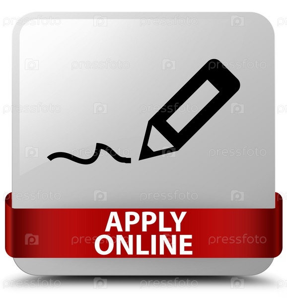 Apply online (edit pen icon) белая квадратная кнопка красная лента посередине