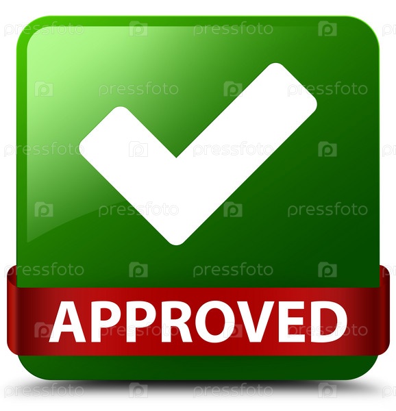 Approved (validate icon) зеленая квадратная кнопка красная лента посередине