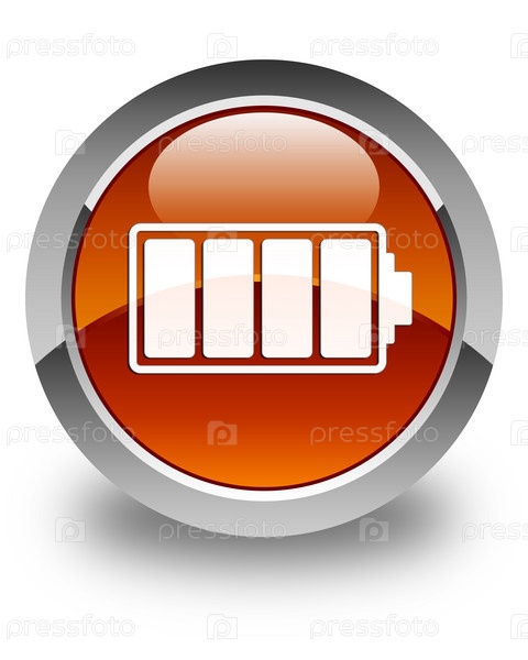 Икона батареи блестящая коричневая круглая кнопка