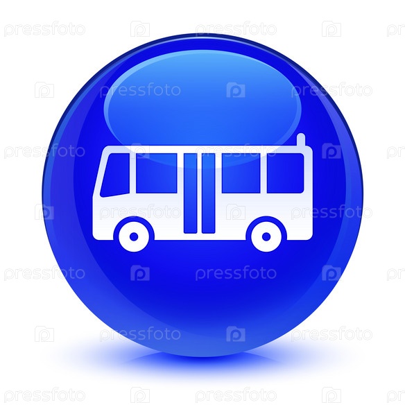 Икона автобуса стеклянная голубая круглая кнопка