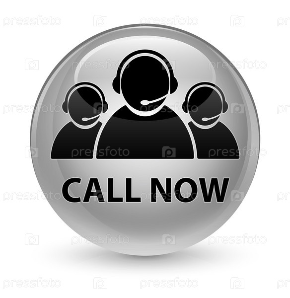 Звоните сейчас (икона команды по обслуживанию клиентов) стеклянная белая круглая кнопка