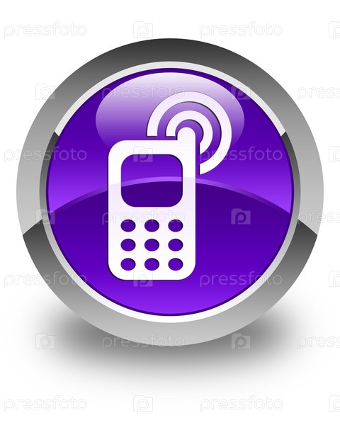 Икона звонка сотового телефона блестящая фиолетовая круглая кнопка