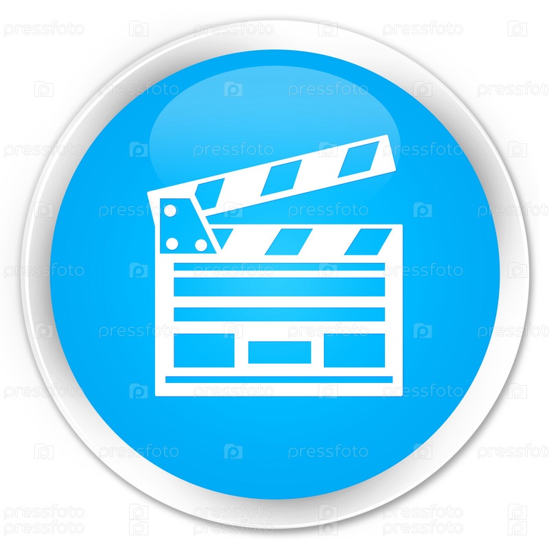 Клип с иконкой кинотеатра премиум-циановый синий круглый кнопку