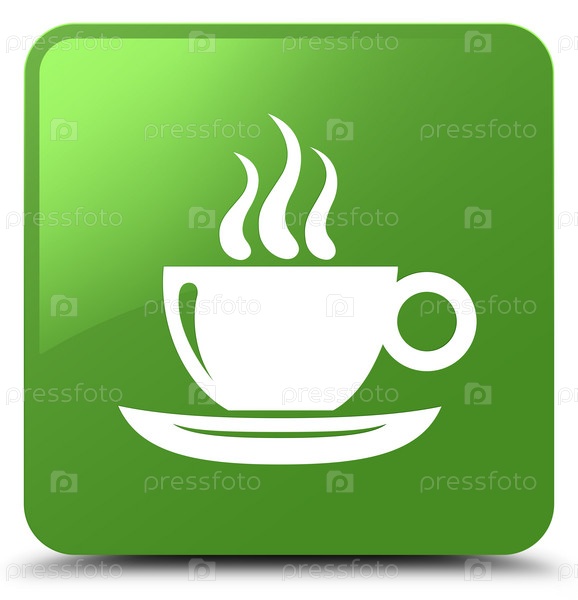 Икона кофейной чашки мягкая зеленая квадратная кнопка