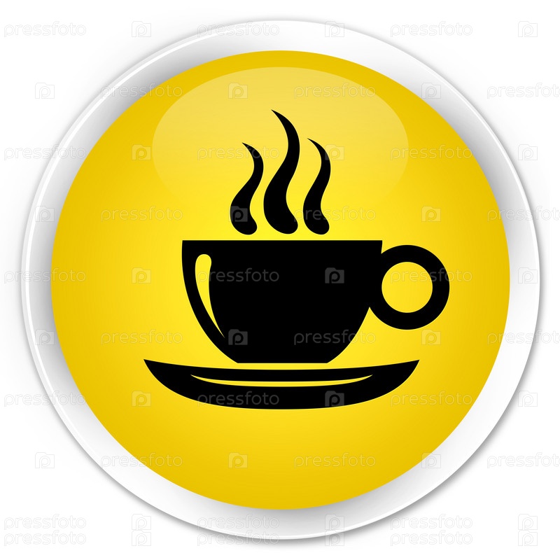 Икона кофейной чашки премиум жёлтая круглая кнопка