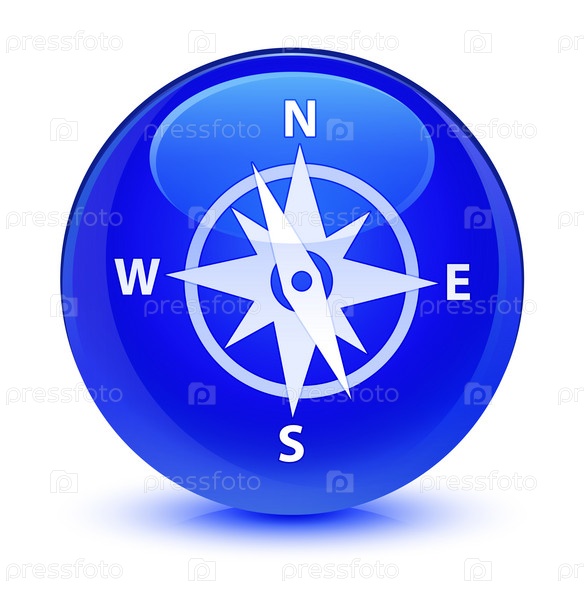 Икона компаса стеклянная голубая круглая кнопка