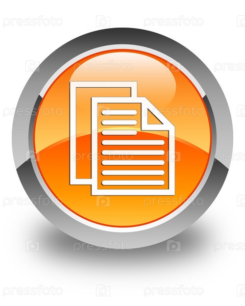 Иконка страниц документов блестящая оранжевая круглая кнопка