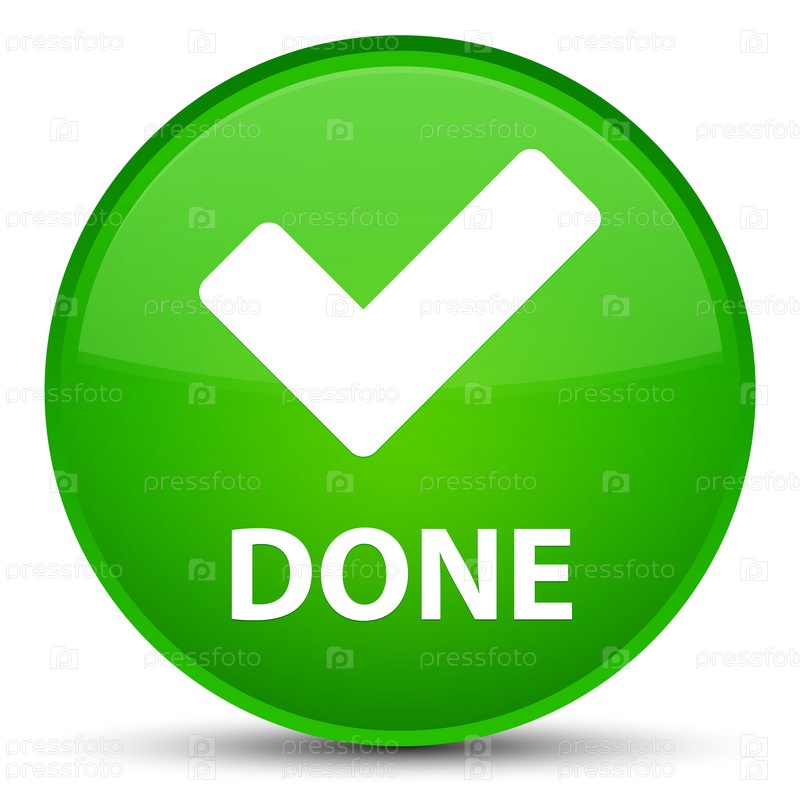 Сделано (икона проверки) специальная зеленая круглая кнопка