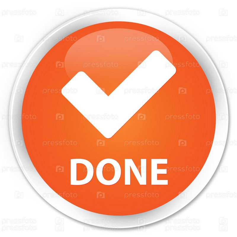 Сделано (икона проверки) премиум оранжевая круглая кнопка