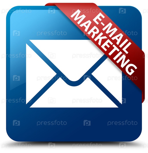 Маркетинг по электронной почте синяя квадратная кнопка красная лента в углу