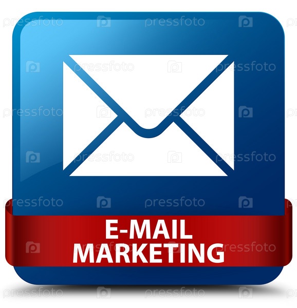 Маркетинг по электронной почте синяя квадратная кнопка красная лента посередине
