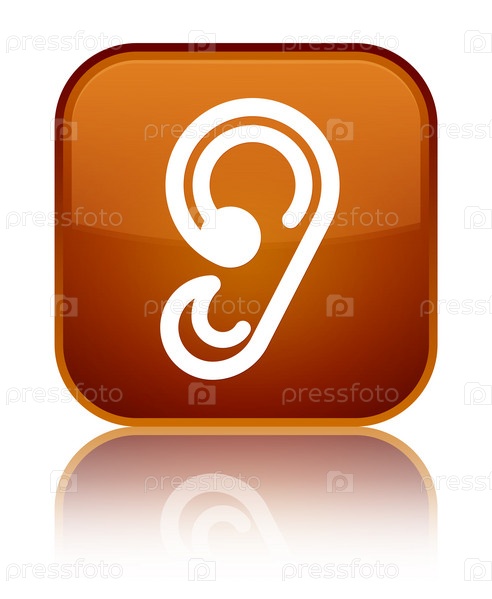 Икона ушей специальная коричневая квадратная кнопка